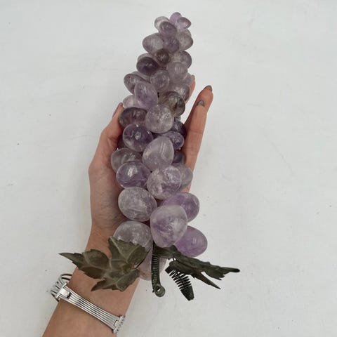 Håndmalet marmor drueklase skulptur fra Italien, 31 cm bred, 21 cm høj, 16 cm dyb, i god brugt stand med aldersmærker og pletter, med et ægte vinranke-stilk i træ. Klik på den blå "gå til varen" knap, for at købe eller byde på denne vare. Den samlede pris vil blive vist inden du afgiver dit bud.