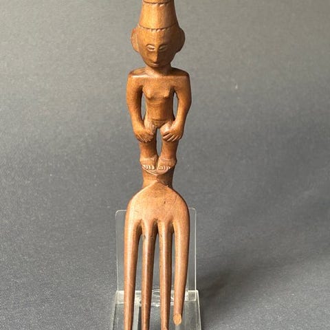 Ifugao træske med en udskåret figur i skaftet, 16 cm høj, i acceptabel stand, oprindelse Filippinerne, privat samling, uden stand. Klik på den blå "gå til varen" knap, for at købe eller byde på denne vare. Den samlede pris vil blive vist inden du afgiver dit bud.