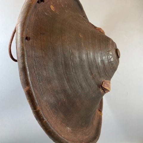 Til salg står et enestående forfædreskilt (Jamasj) fra Asmat, traditionelt brugt i mændenes huse (jeu) som åndelig beskyttelse og udtryk for forfædrelinjen. Reliefet viser adskillige indbyrdes sammenfiltrede menneskelige figurer – symbolsk for den genealogiske forbindelse mellem de levende og forfædrene.
