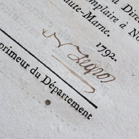 In-8°, hæfte uden sidetal (ca. 40 sider), oprindeligt syet, opbevaret under et tomt omslag i gråt papir.
