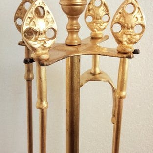 Messing-serviteur til pejs i art deco-stil, meget chic og elegant design.