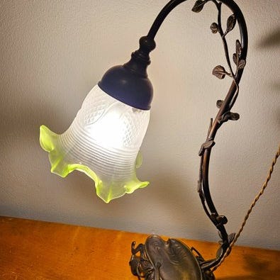 Smuk bouillotte-lampe til skrivebordet i Louis XVI-stil, drevet af elektricitet. Højde: 44,5 cm