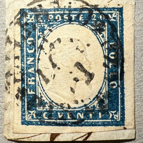 Sardinien, 20 c. fra 61 uden affrydningsmotiv med original gumme, katalog Sassone 15Dc Bolaffi 12B, udstedt fra 1861, mint uden linguella og certificeret. Klik på den blå "gå til varen" knap, for at købe eller byde på denne vare. Den samlede pris vil blive vist inden du afgiver dit bud.