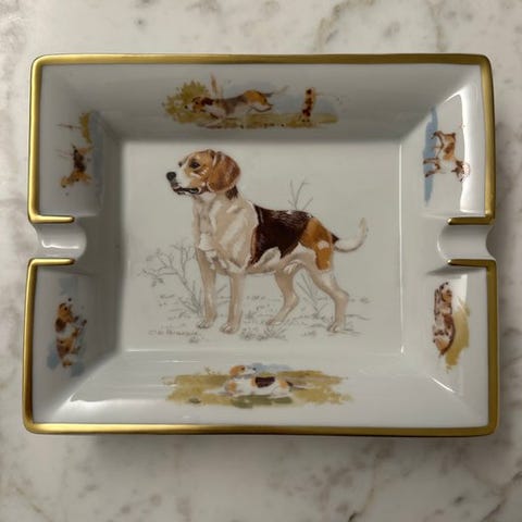 Hermès porcelænsaskebæger med leoparddekoration, fremstillet i Frankrig i 1980erne; mål 6 × 8 × 2 cm, i fremragende stand og underskrevet. Klik på den blå "gå til varen" knap, for at købe eller byde på denne vare. Den samlede pris vil blive vist inden du afgiver dit bud.