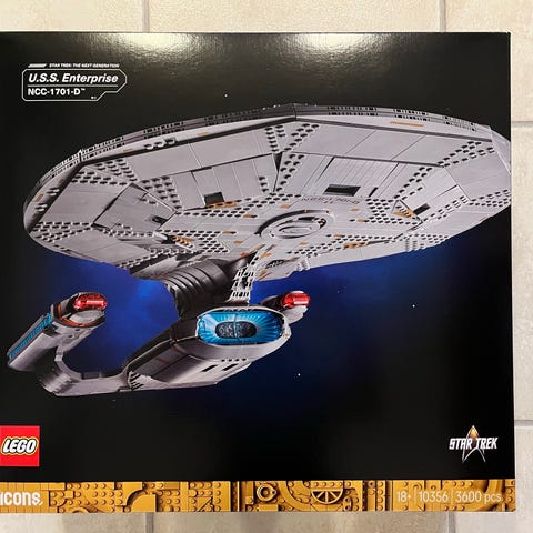 LEGO Star Trek-sæt 10356 – U.S.S. Enterprise NCC-1701-D, en ikonisk udstillingsmodel, der repræsenterer et af historiens mest legendariske rumskibe inden for science-fiction.