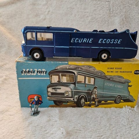 Corgi Toys 231 Triumph Herald Coupé, i original emballage i blå, støbt metal, fra 1960’erne, i original emballage og i god stand. Klik på den blå "gå til varen" knap, for at købe eller byde på denne vare. Den samlede pris vil blive vist inden du afgiver dit bud.