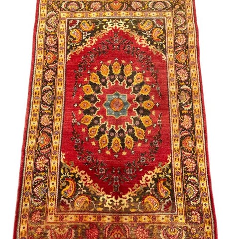 Origin: Unikt håndknyttet turkmensk tæppe med smukke farver.