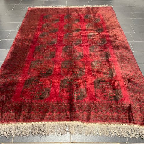 Unikt håndknyttet pakistan-tæppe med smukke farver.
