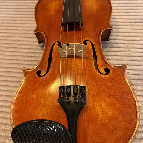 Denne fuldstørrelses 4/4 violin stammer fra Tyskland og bærer en mærkat med teksten 'August Dölling, Geigenmacher'. Den repræsenterer et traditionelt tysk værkstedsinstrument, produceret til pålidelig musikalsk brug og beregnet for elever, amatører og ensembledemusikanter.