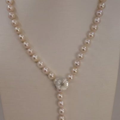 Den klassiske Akoya-perle er en type dyrket saltvandsperle, der stammer fra Japan, og har en karakteristisk hvid farve med en pink undertone.