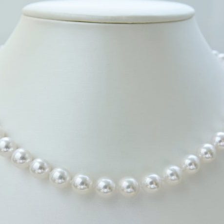 Disse næsten runde perler er 8,5x9 mm store og er udvalgt for deres kvalitet og meget skarpe glans.
