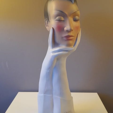 Dior gipsportræt bust, fremstillet i Frankrig, i god stand med enkelte slid og pletter som følge af alder, mål 57 cm høj, 25 cm bred, 20 cm dyb, vægt 3,5 kg, i Art Deco-stil. Klik på den blå "gå til varen" knap, for at købe eller byde på denne vare. Den samlede pris vil blive vist inden du afgiver dit bud.