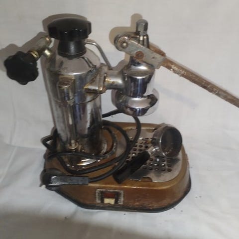 Espressomaskine med løftelever fra 1970'erne La Peppina Fe-Ar Felice Arosio Milano Italien, tredje version, Spænding 220 V