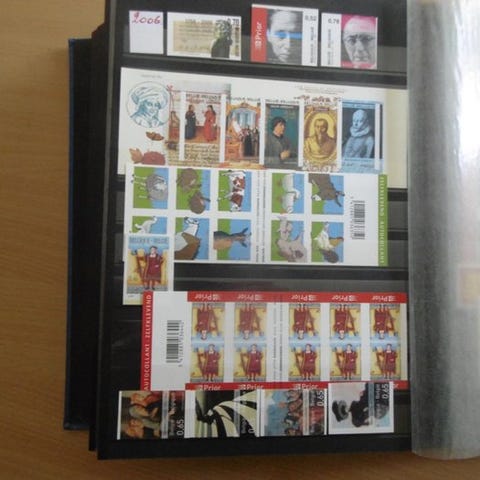 En komplet årgang med frimærkeblokke og frimærkerne fra blokkene.