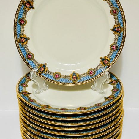Eksklusivt 54-delt porcelænsservice, modellet "Paniers Fleuris", designet af Patrick Frey i Limoges-porcelæn i 1990’erne. På bagsiden findes mærket "Patrick Frey. Paris. \"Paniers Fleuris\". Tissu assorti" og mærket for Limoges-porcelæn.