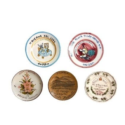Væsentlig og særdeles sjælden serie af 6 tallerkener “ikoniske” i italiensk kunstnerisk keramik, kendetegnet ved en stærkt buet og dyb form, med stor plastisk og dekorativ virkning, typisk for de bedste italienske produktioner i anden halvdel af det tyvende århundrede.