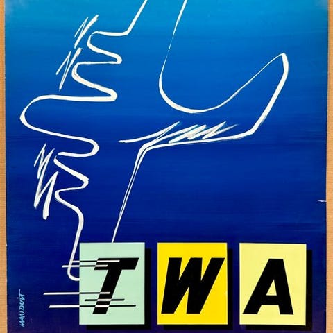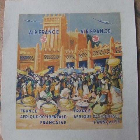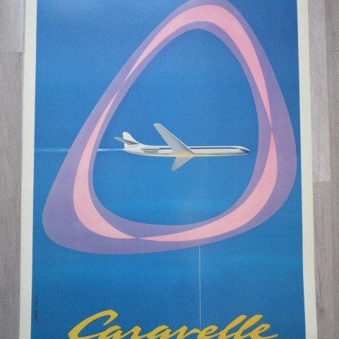 Original gouache-reklamemockup lavet til et projekt for Air France. Dette projekt blev aldrig udgivet som plakat. Typisk grafisk design fra 1950'erne i R. Savignacs stil.