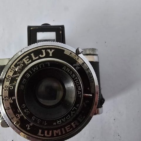 Riken Steky Nickel kamera med Stekinar 25mm og 40mm objektiver, en 16 mm subminiaturkamera til 24 eksponeringer på 16 mm film, serienummer 2426, testet og fungerende. Klik på den blå "gå til varen" knap, for at købe eller byde på denne vare. Den samlede pris vil blive vist inden du afgiver dit bud.