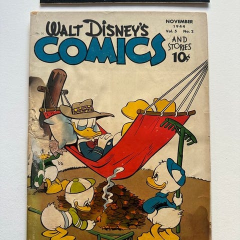 To første udgaver af Dell Comics Four Color, nr. 203 og 238, The Golden Chrismas Tree og Hoodoo Voodoo med Carl Barks' Donald Duck, i god stand. Klik på den blå "gå til varen" knap, for at købe eller byde på denne vare. Den samlede pris vil blive vist inden du afgiver dit bud.