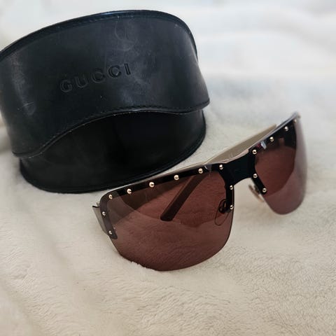 Gucci Hollywood Forever solbriller i plastik, lavet i Italien, nye eller som nye, one size, med æske, rengøringsklud og støvpose, hvid farve, mønster andet mønster. Klik på den blå "gå til varen" knap, for at købe eller byde på denne vare. Den samlede pris vil blive vist inden du afgiver dit bud.