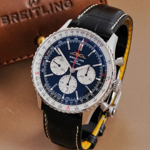 Breitling Navitimer 92, reference A30022, automatisk bevægelse, 38 mm stålur, blå skive og læderrem, i meget god stand med få brugstegn, safirglas, sælges kun uret med 12 måneders garanti og forsikret forsendelse. Klik på den blå "gå til varen" knap, for at købe eller byde på denne vare. Den samlede pris vil blive vist inden du afgiver dit bud.