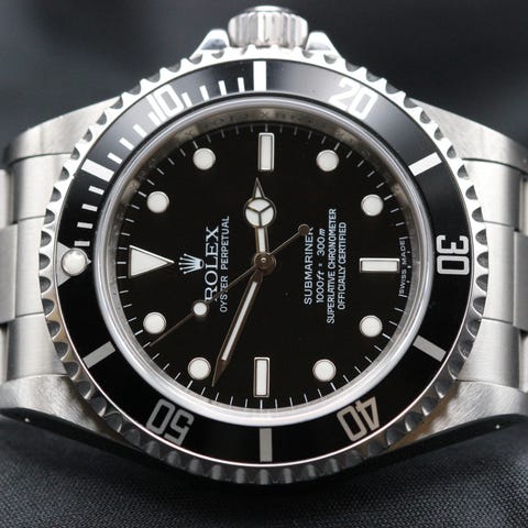Rolex Submariner No Date reference 14060, automatisk herreur vandtæt ur i stål fra 1998, kasse 40 mm, sort urskive, langt stålrem (>200 mm), original æske og papirer, forsikret forsendelse. Klik på den blå "gå til varen" knap, for at købe eller byde på denne vare. Den samlede pris vil blive vist inden du afgiver dit bud.