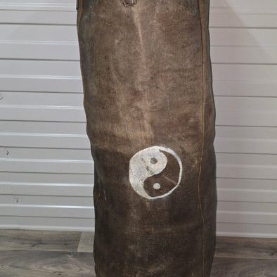 Gammelt vintage ægte læder slåbold & boksehandsker - Boksesæk