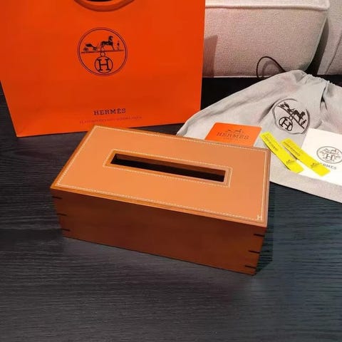 Hermès tissuebox af træ med ægte kalvelæder, fremstillet i Indonesien, med magnetisk låg og dimensionerne 25 cm bred, 14 cm dyb og 9 cm høj. Klik på den blå "gå til varen" knap, for at købe eller byde på denne vare. Den samlede pris vil blive vist inden du afgiver dit bud.