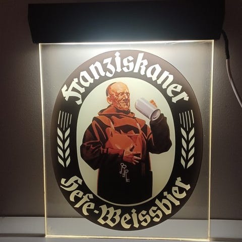 De Koninck dobbelt sidet lysboks i plastik, oprindelse Belgien (Antwerpen), original/officiel, i god stand med mindre tegn på alder og pletter; mål: 36 cm høj, 30 cm bred, 8 cm dyb; testet og i funktion. Klik på den blå "gå til varen" knap, for at købe eller byde på denne vare. Den samlede pris vil blive vist inden du afgiver dit bud.