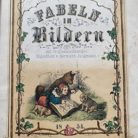 Frankfurt: Literarische Anstalt Rütten & Loening, uden dato [ca. 1910]. 42 sider. 28 cm x 21,5 cm. Forlagets røde klædebinding med trykt forside. Fjerde udgave af denne illustrerede børnebog om dyr, der forsøger at efterligne militært liv. Smukt illustreret gennem hele med sort-hvide og sepiafarvede tegninger samt kromolithografier.