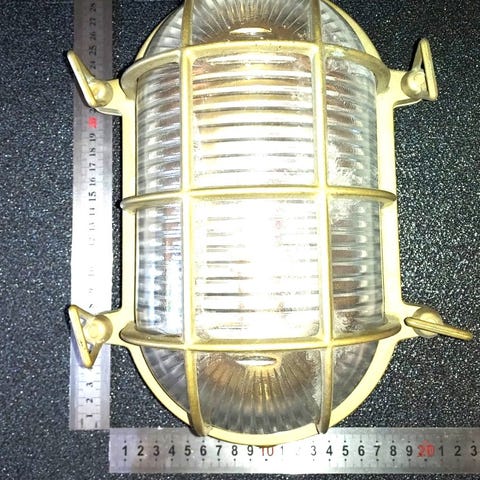 To nautiske messingvæglamper fra Nederlandene, i god brugt stand med mindre aldersrelaterede tegn, i funktion, dimensioner 26,5 cm høj, 10 cm bred, 13 cm dyb, kabel og LED-pære ikke inkluderet. Klik på den blå "gå til varen" knap, for at købe eller byde på denne vare. Den samlede pris vil blive vist inden du afgiver dit bud.