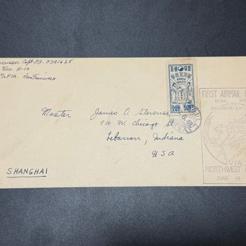 US-kuvert tilsendt med den første nordamerikanske flyvning med Zeppelin-luftskibet Hindenburg i 1937. Fordi luftskibet udbrændte under landingen i Lakehurst, blev al post til returflyvningen sendt med søpost til Frankfurt og ankom der den 17. maj 1937. Dette er et bedre registreret brev til Frankfurt. Kuverten viser nogle mindre brugstegn, hvilket kan negligeres. Bemærk venligst, at der ikke blev anvendt nogen yderligere Zeppelin-cancel på nogen af den amerikanske post. Alle vigtige transit-stempler er på bagsiden. Et ægte historie-stykke fra Hindenburgs