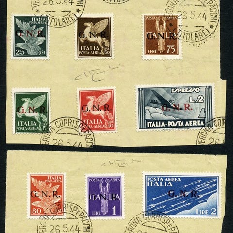 Frimærke fra den italienske sociale republik overtrykt GNR