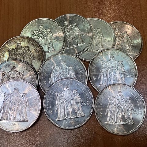 Lot af verdenspenges (ikke euro, før 2000) i sølv og andre metaller, i alt 50 oz, ikke graderet og med sjældne gamle tyske stater. Klik på den blå "gå til varen" knap, for at købe eller byde på denne vare. Den samlede pris vil blive vist inden du afgiver dit bud.