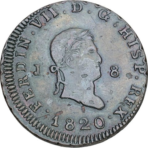 Mønt præget i Mexico-myntværket med F·M-sættere, svarende til de tidlige år af kongeriget Carlos IV. Forsiden viser det laurbærkransede portræt af monarken, der ser mod højre, med draperet bryst og rustning, omgivet af den kongelige inskription. Bagsiden viser det kronede spanske skjold, inddelt i Castilla, León, Granada og de bourbon-lisfleur i det centrale escusón, flankeret af Herculessøjlerne med deres respektive inskriptioner, alt omgivet af en cirkulær