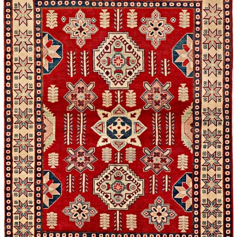 Afghansk Kazak-tæppe, model Fine Afghaan Kazak, håndknotet i uld på bomuld, 183 × 122 cm, oprindelse Afghanistan, 21. århundrede, i meget god stand og professionelt rengjort. Klik på den blå "gå til varen" knap, for at købe eller byde på denne vare. Den samlede pris vil blive vist inden du afgiver dit bud.