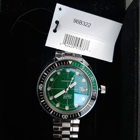 Endelig, efter 64 år, præsenteres Bulova Mil Ship for offentligheden med denne nye model på 41 mm med en kasse i bronze. Den militærgrønne urskive, fremstillet i få eksemplarer globalt, med indeks og visere behandlet med Luminova i vintagefarve, har en meget karakteristisk