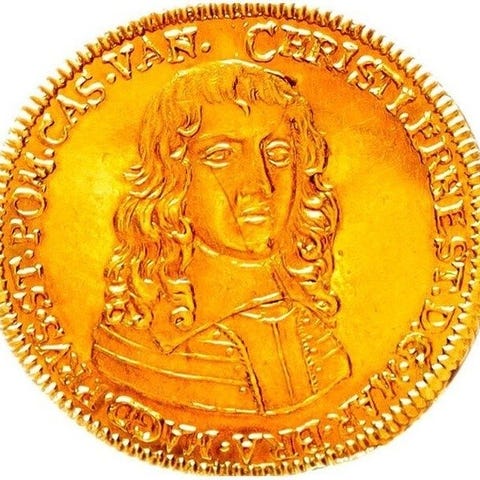 Guld Portugaløser til 12 dukater, o.J. (efter 1650), stempel af Johann Höhn, Ø49,0 mm, vægt 41,56 g, yderst sjælden og det andet eksemplar i handelen. Klik på den blå "gå til varen" knap, for at købe eller byde på denne vare. Den samlede pris vil blive vist inden du afgiver dit bud.
