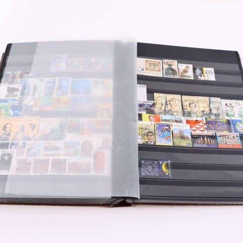 Samling af 15 frimærker, alle med bogstaver i vandmærket, alt sammen præsenteret på ark med forklaringer.
