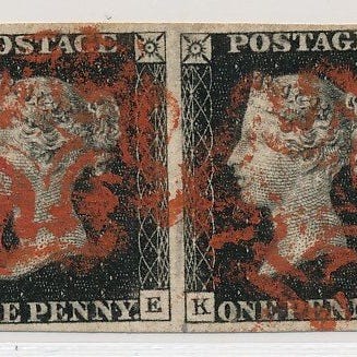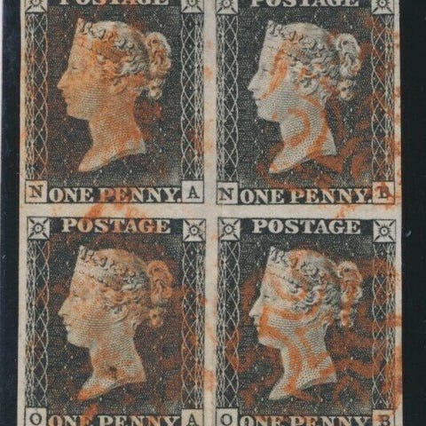 Flot stykke fra det første brevmærke i verden på brev til York. Meget dekorativt med rødt malingstempel på forsiden. Bagerst stempel T.P. Chief Office.