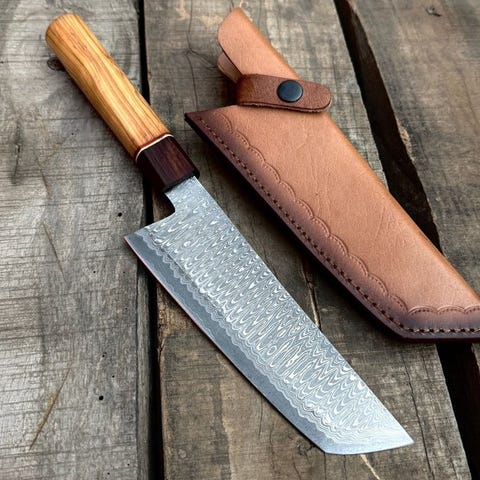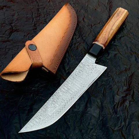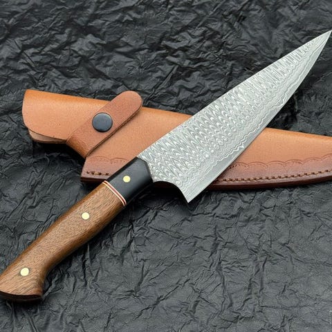 Køkkenkniv - Køkkenkniv - Damascus 10/95 15N20 Chefkniv Håndlavede knive, Søl...
