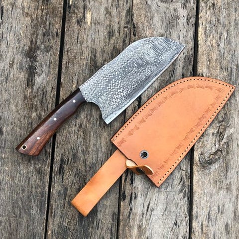 Dette er en bemærkelsesværdigt smedet og håndsamlet køkkenkniv fremstillet af de fineste knivmagerne i USA. Dette er en meget velhåndværket Prestigious Custom Handmade Skinners Knife, Multi Layered Forged Steel, Wood Handle, Leather Sheath. Kniven har et behageligt greb. Bladet er lavet af særligt smedet stål med en høj skærekant. Denne kniv er såvel som et samlerobjekt som et brugbart køkkenredskab. De længste knive har en cirka 44 cm længde.
