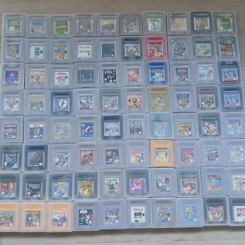 11 stk. spilkassetter til Game Boy, som vist på billedet.