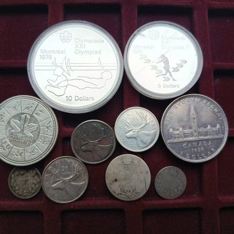 Sælger et parti på 11 franske sølvmønter (beskrivelse i foto).