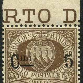 Italien, Segnatasse “Mascherine”, 30 cent på 2 cent på okker og karmin, mint uden helelapp med særdeles god centrering; fra 1890, Sassone T19, certificeret Raybaudi oro. Klik på den blå "gå til varen" knap, for at købe eller byde på denne vare. Den samlede pris vil blive vist inden du afgiver dit bud.