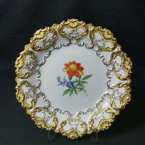 Meissen - motivo floreale in blu con bordo dorato - 1.Wahl 17x14 cm - Vægtall...