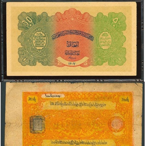 "Centrale Bank Guinee 100 Frs" er en i hårdt træ udskåret og malet oversized banknote af Thomas Tchopzan (1960-2024) i stort format (mere end en meter bred). Kunstværket er håndsigneret, dateret og forsynet med en håndskrevet titel. Som ekstra får køberen også banknoten, den er modelleret efter.