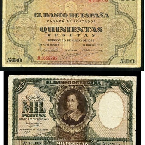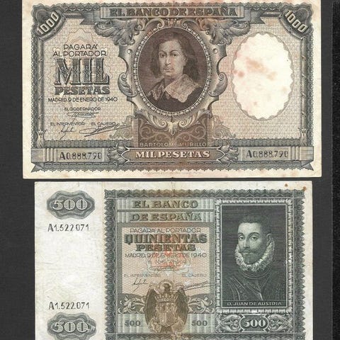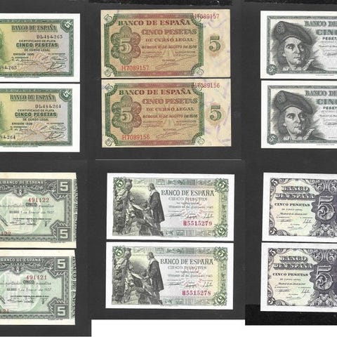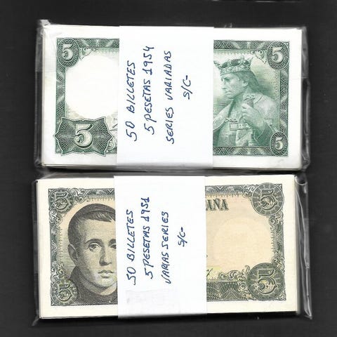 Lot på 10 sedler à 10.000 pesetas fra 1992, Pick 166; varierende kvaliteter. Klik på den blå "gå til varen" knap, for at købe eller byde på denne vare. Den samlede pris vil blive vist inden du afgiver dit bud.