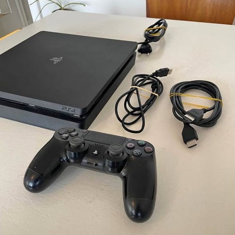 Sony PlayStation 4 CUH-1216B, 450 GB, fremstillet i 2018, i meget god stand og i funktion, inklusive strøm- og HDMI-kabler, en controller med emballage og opladerkabel og et nyt Resident Evil Biohazard Gold Edition-spil. Klik på den blå "gå til varen" knap, for at købe eller byde på denne vare. Den samlede pris vil blive vist inden du afgiver dit bud.