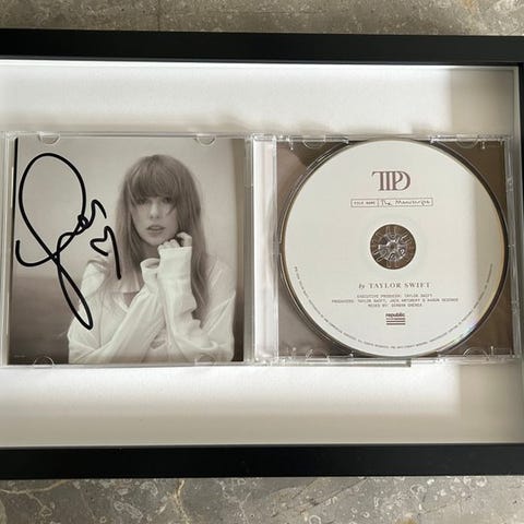 Taylor Swift signeret akustisk guitar, udstillingsstykke i mint tilstand, ca. 40 tommer lang, signaturen på en del, der er ombrugt som pikguard, og JSA-hologram for ægthed. Klik på den blå "gå til varen" knap, for at købe eller byde på denne vare. Den samlede pris vil blive vist inden du afgiver dit bud.